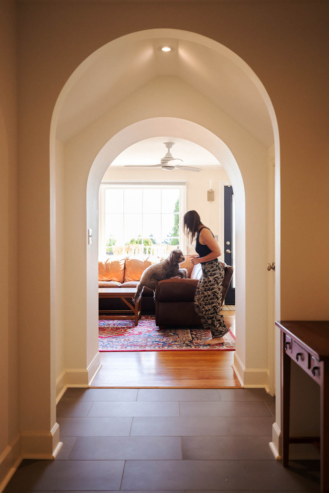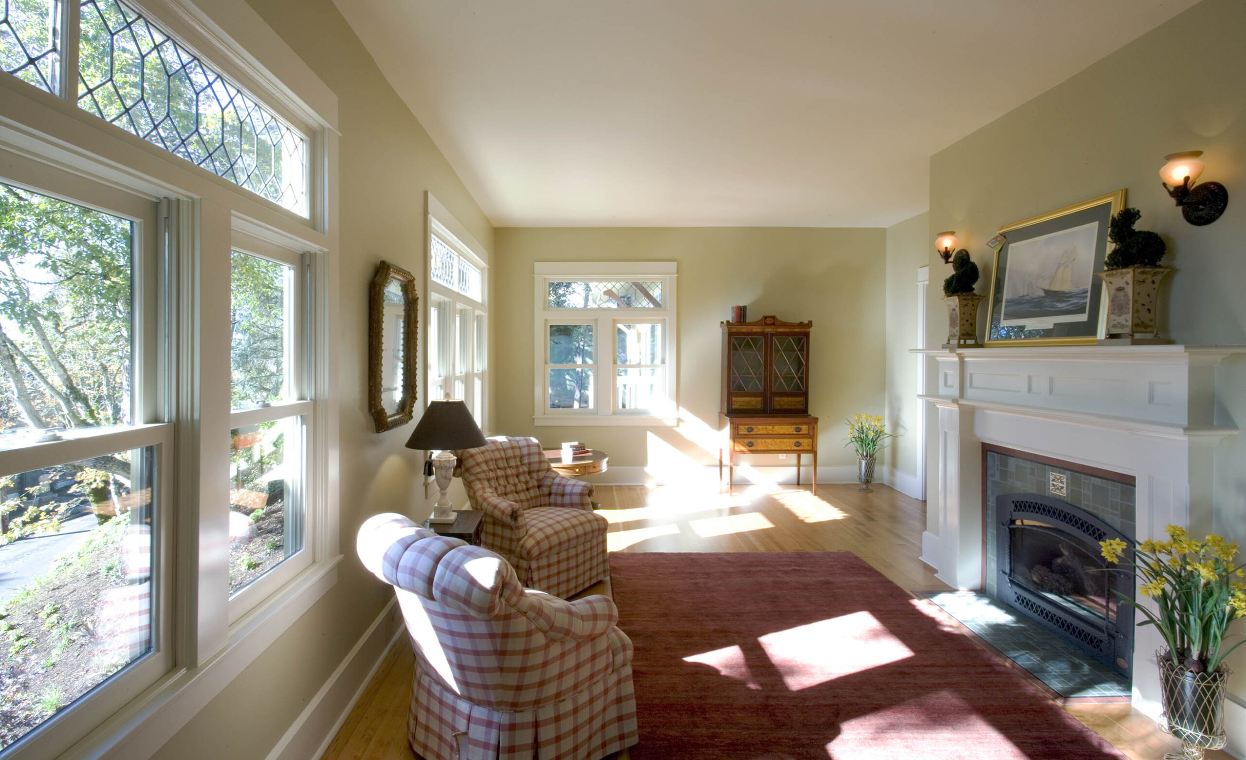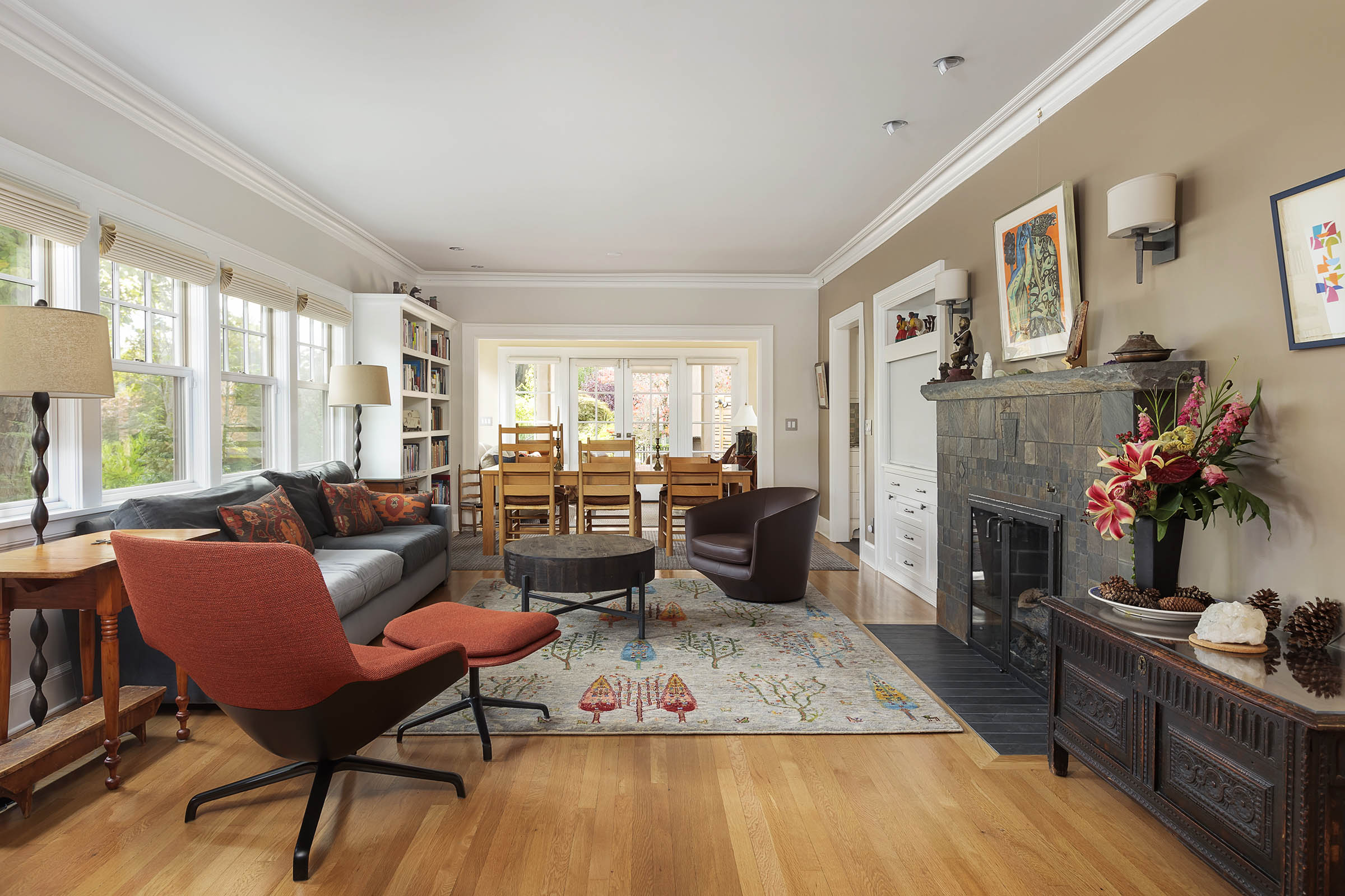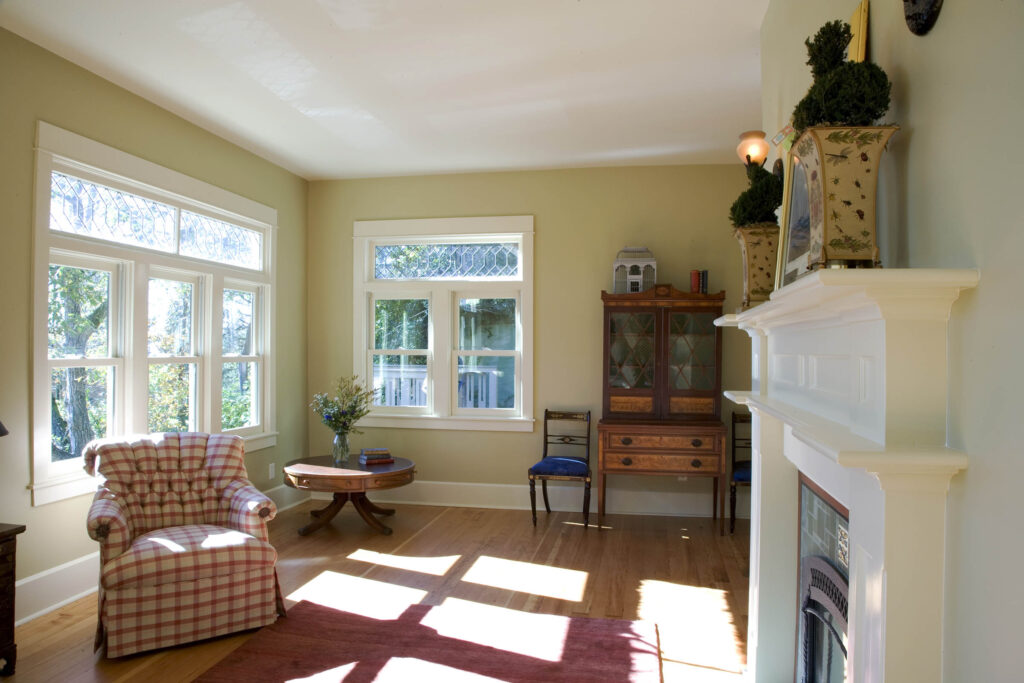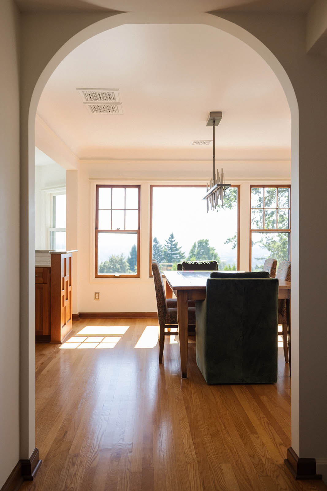 Originally the Council Crest Trolley brakeman’s residence, this 3,200-square-foot home brings in beautiful natural light and was upgraded to be a more eco-conscious dwelling. Some of the project features of this 4 bedroom, 2.5 bath house include remilled old growth fir flooring, ipe exterior wood decking, and an added radiant floor heating system. Heat recovery ventilation and formaldehyde-free cabinetry were installed, and non-VOC and recycled paints were used throughout. On the exterior, landscaped bioswales were created, along with a rainwater harvesting option. The modifications of this home allow for a more energy efficient footprint.Â