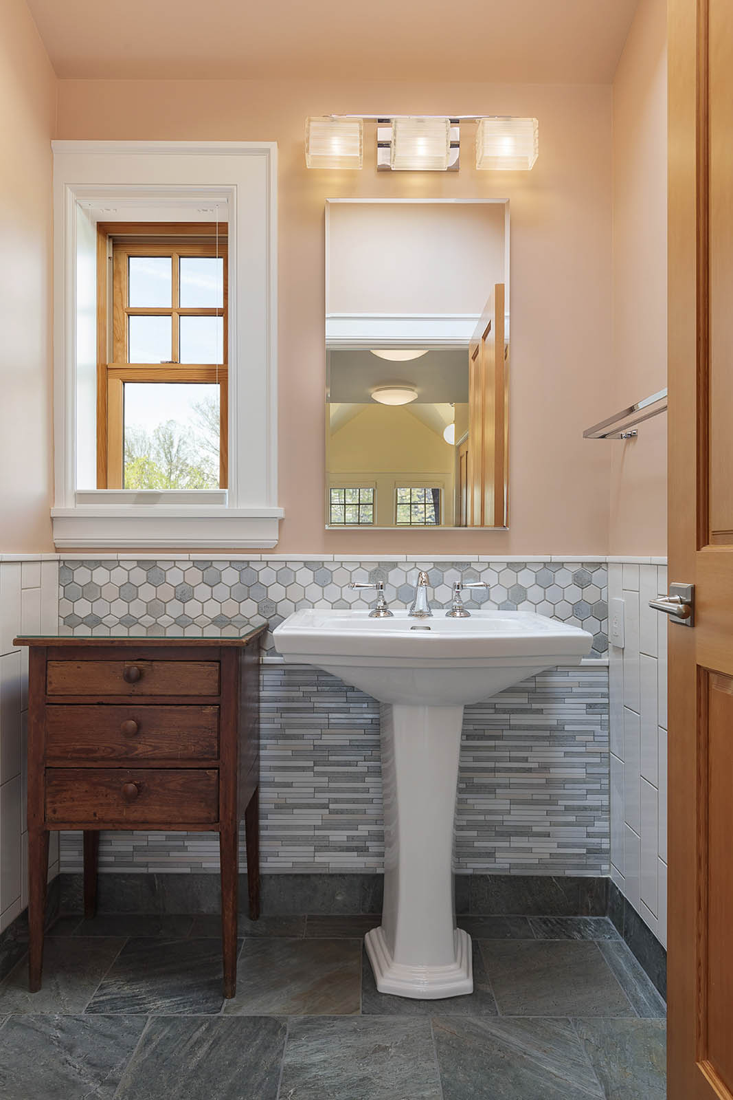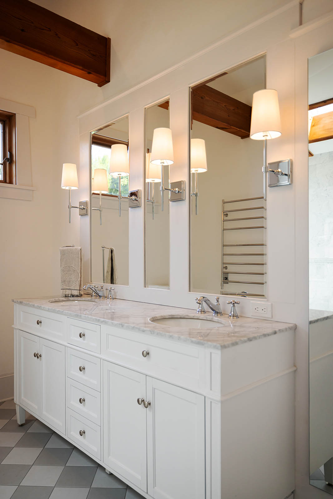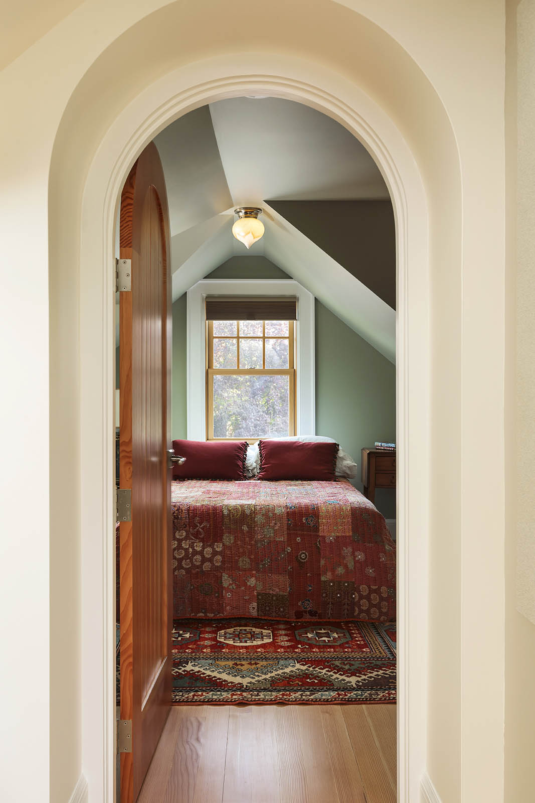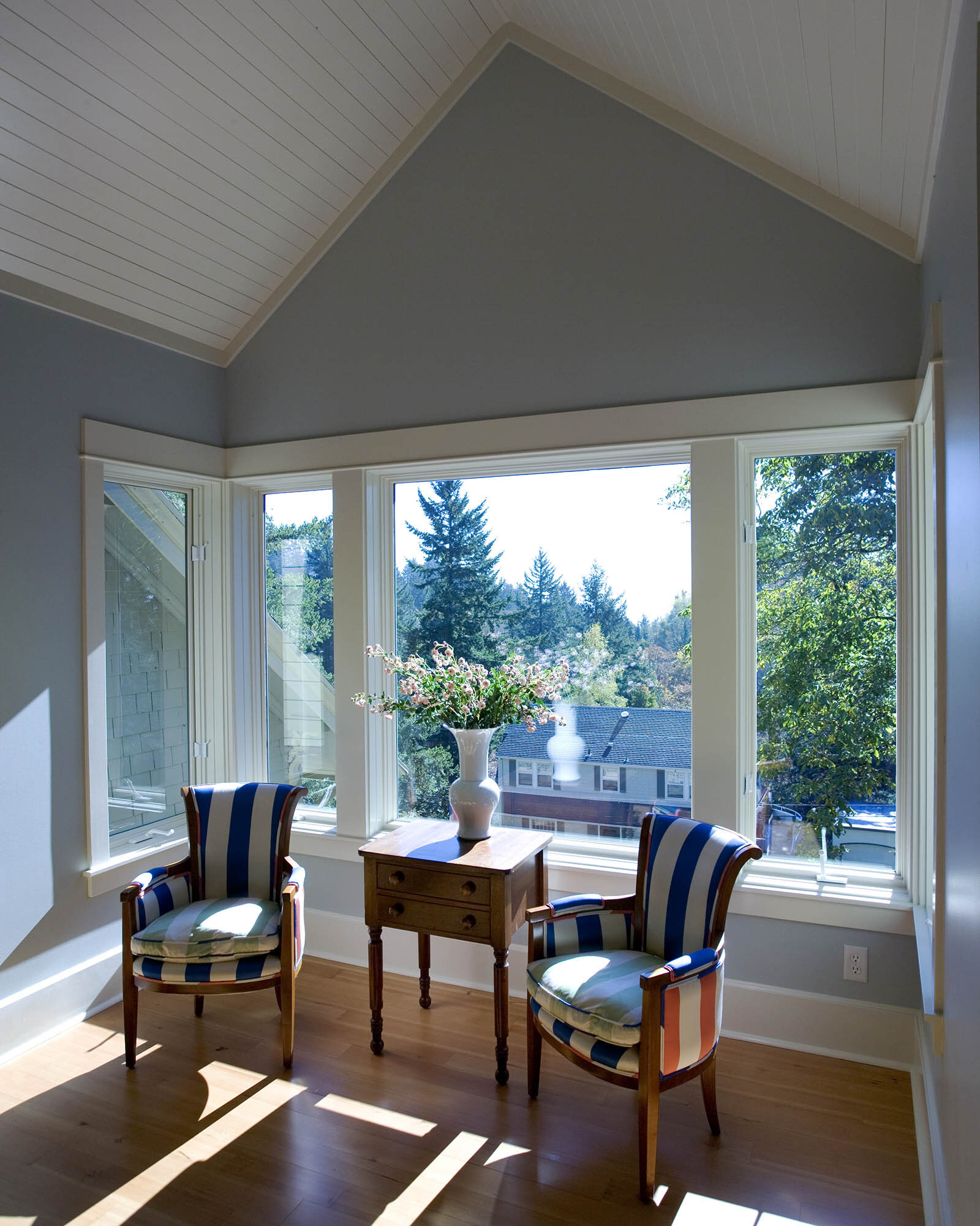 Originally the Council Crest Trolley brakeman’s residence, this 3,200-square-foot home brings in beautiful natural light and was upgraded to be a more eco-conscious dwelling. Some of the project features of this 4 bedroom, 2.5 bath house include remilled old growth fir flooring, ipe exterior wood decking, and an added radiant floor heating system. Heat recovery ventilation and formaldehyde-free cabinetry were installed, and non-VOC and recycled paints were used throughout. On the exterior, landscaped bioswales were created, along with a rainwater harvesting option. The modifications of this home allow for a more energy efficient footprint.Â