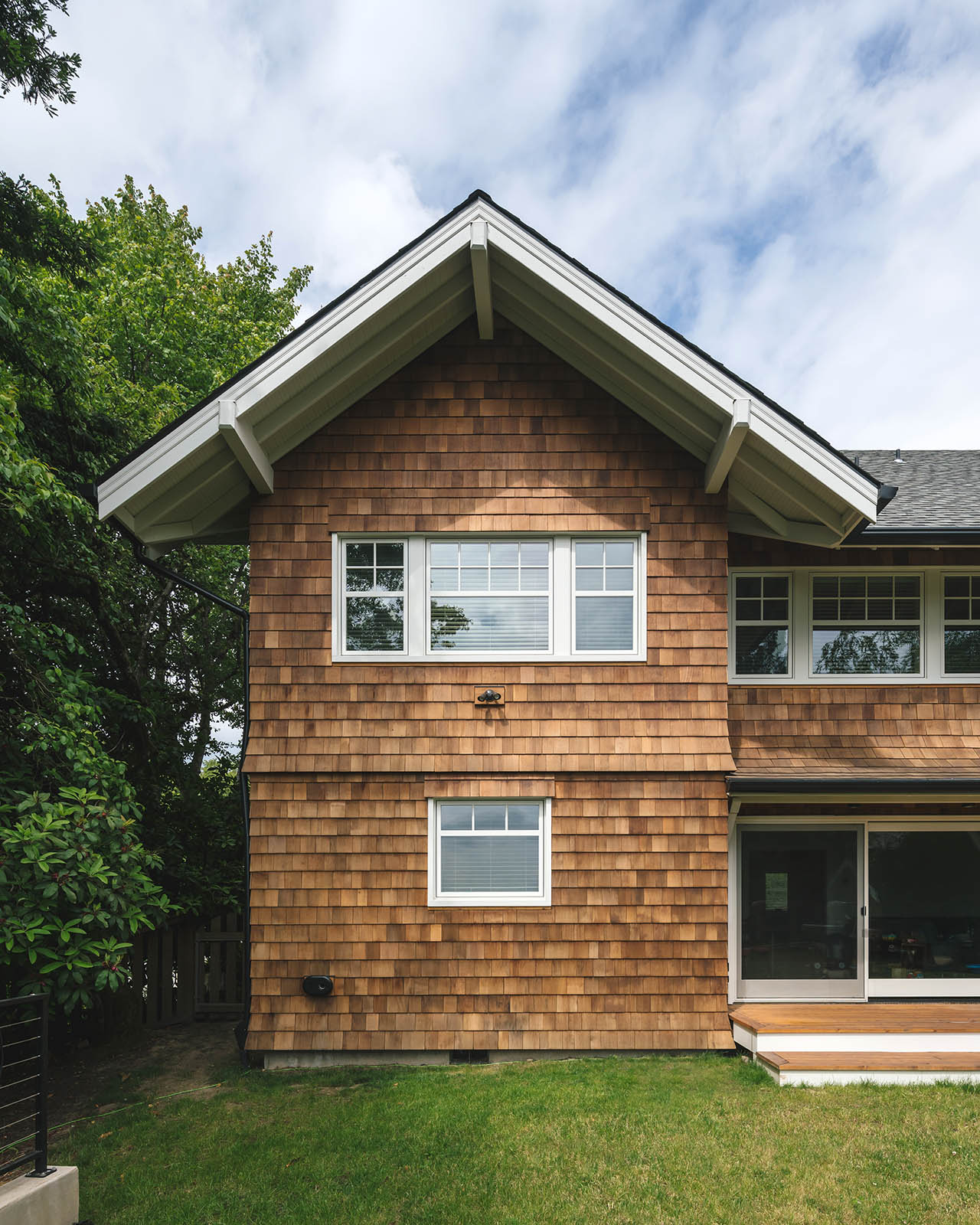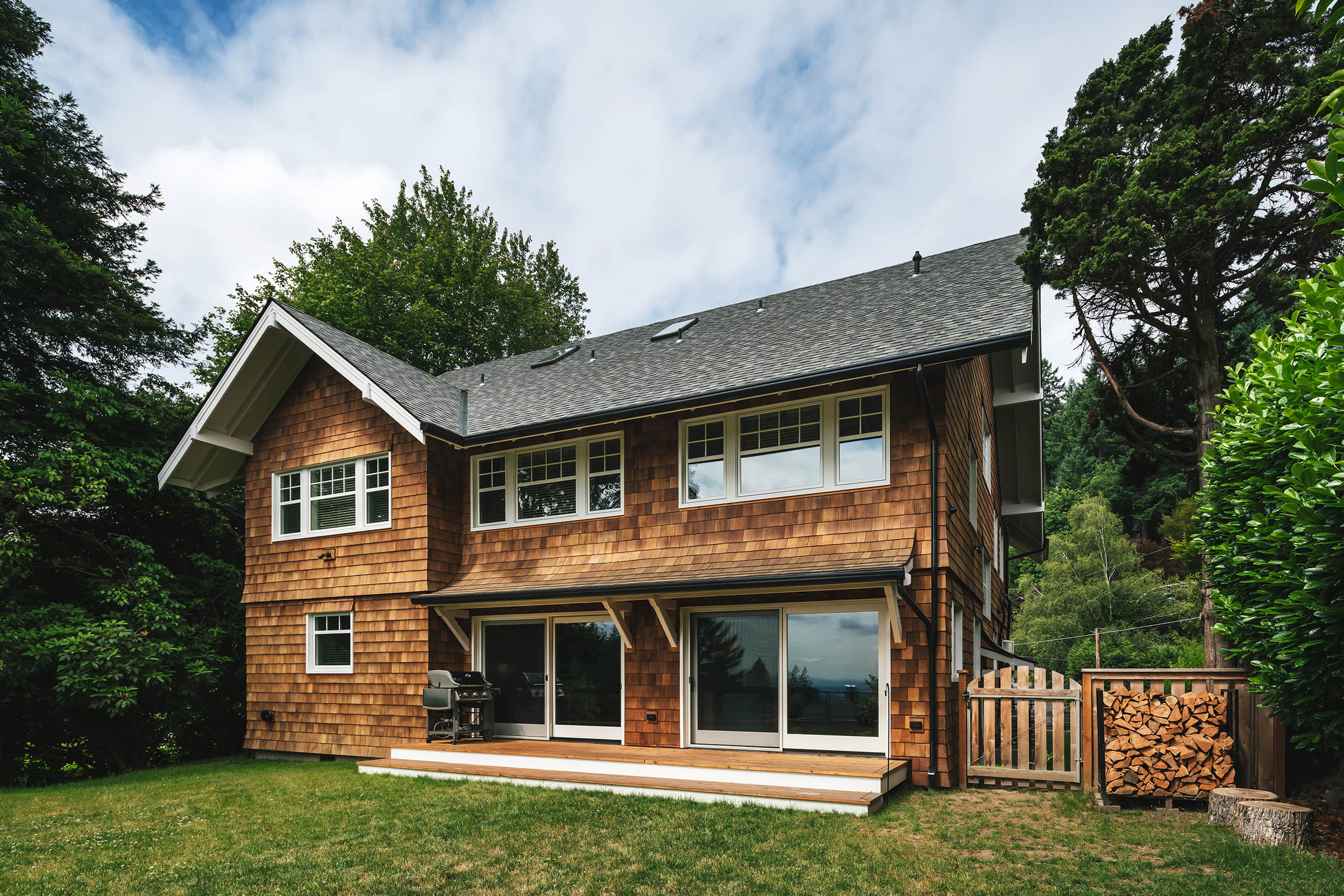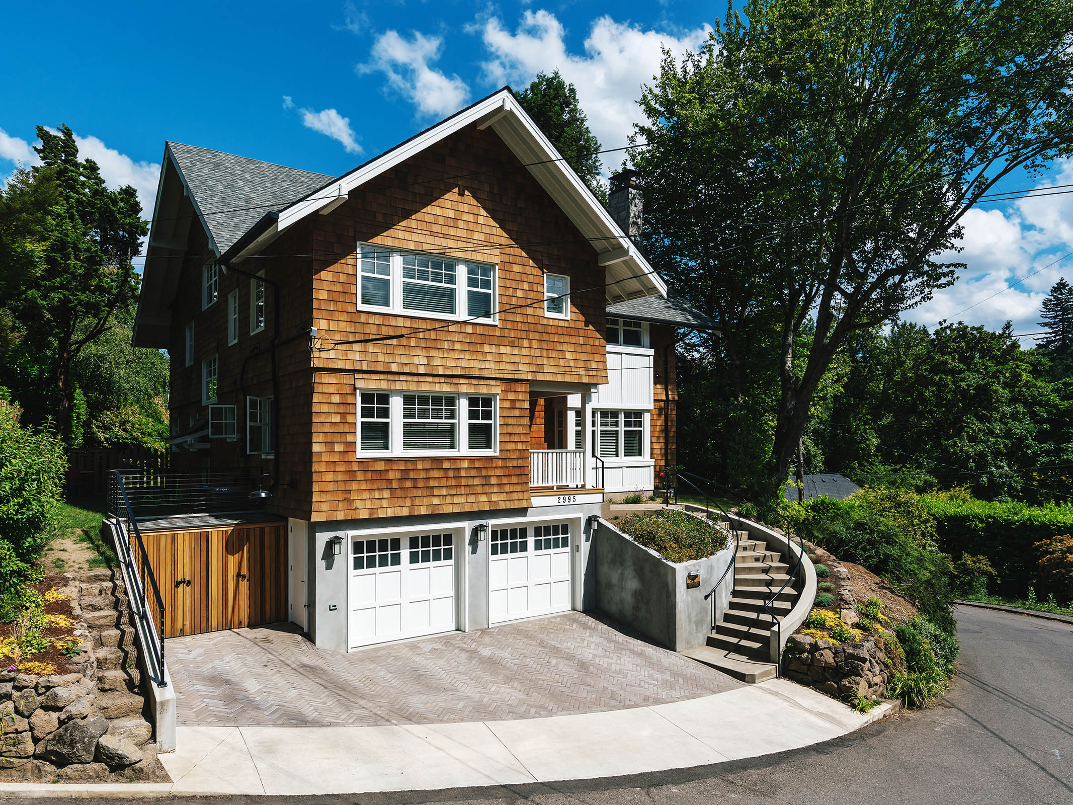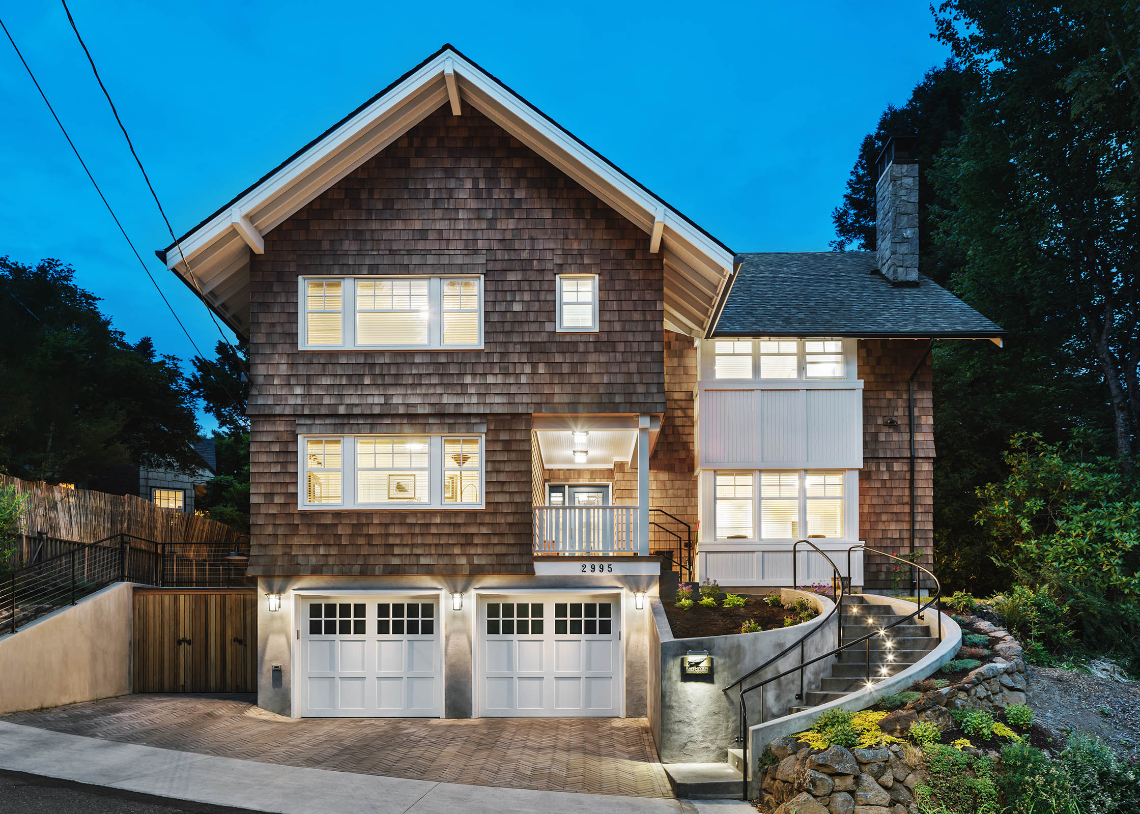 We transformed this modest 1940’s single-story home into a four-story northwest beauty. This down-to-the-studs remodel now incorporates energy-saving solutions including an advanced insulation system to improve air tightness, rain screen cladding to keep moisture out, modern insulated window casements, and shaded awnings. We leveled out the backyard by building a retaining wall, added a shed to match the exterior of the home, and built out a state-of-the-art kitchen complete with granite countertops and stainless steel appliances.