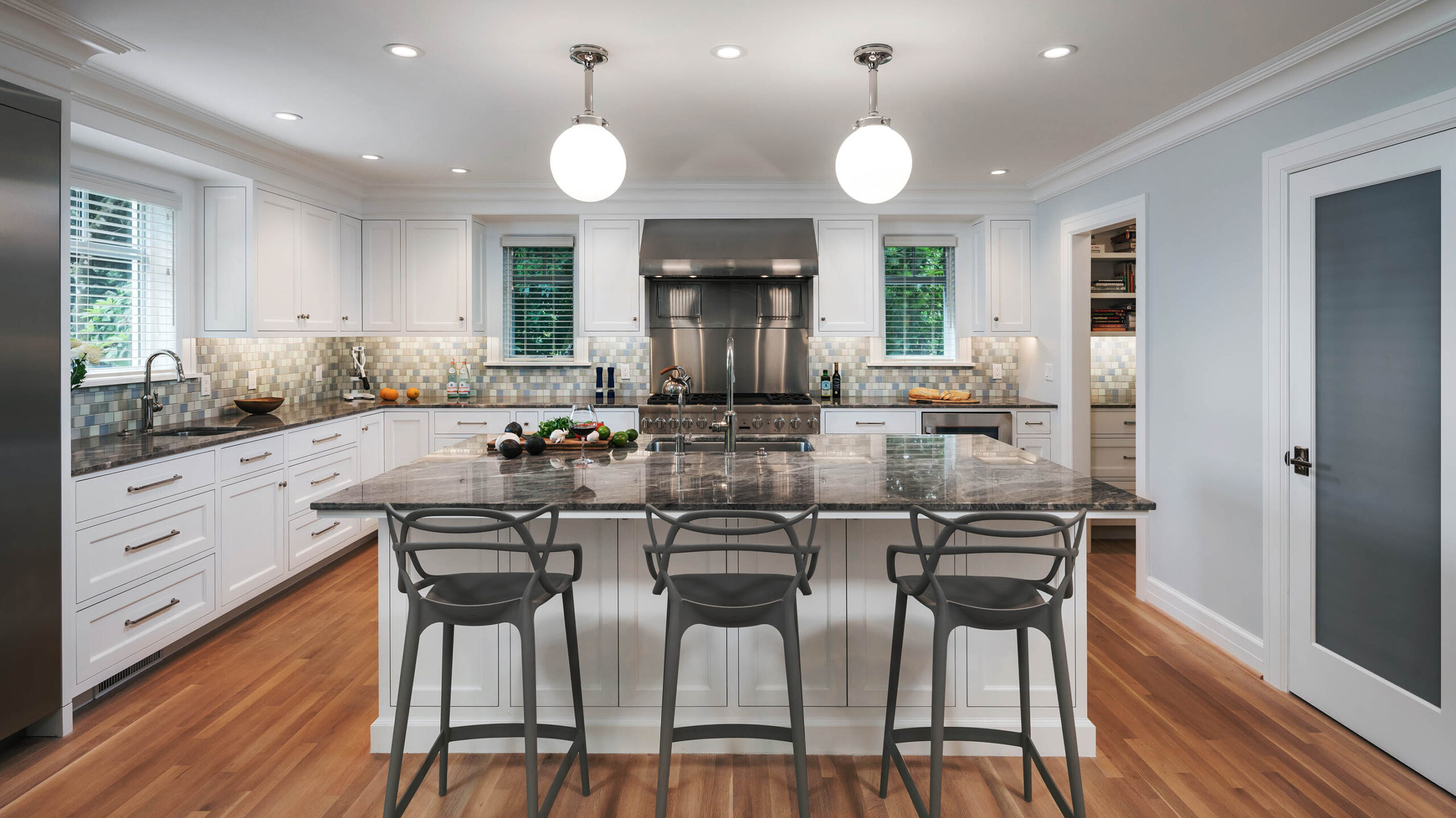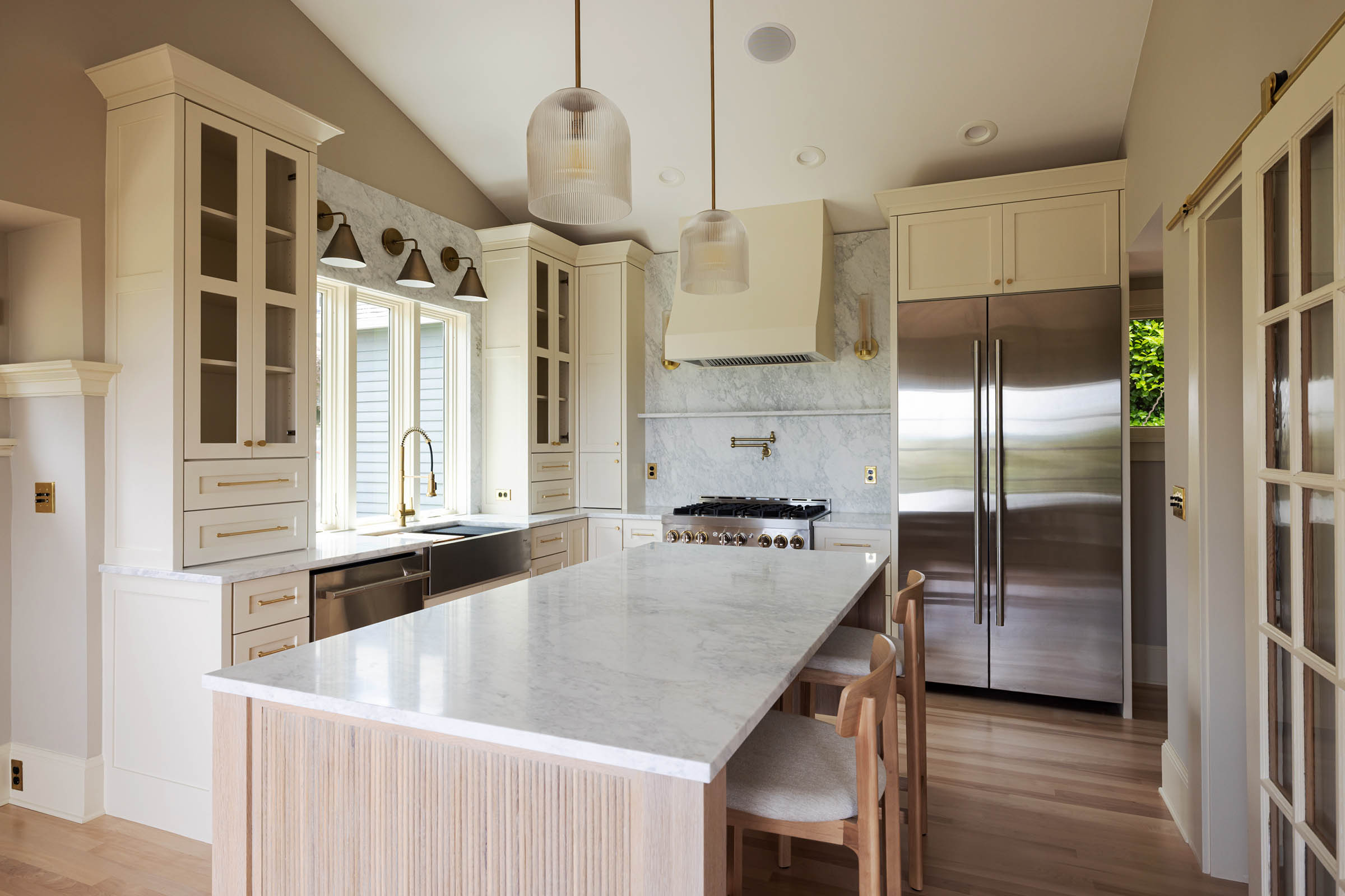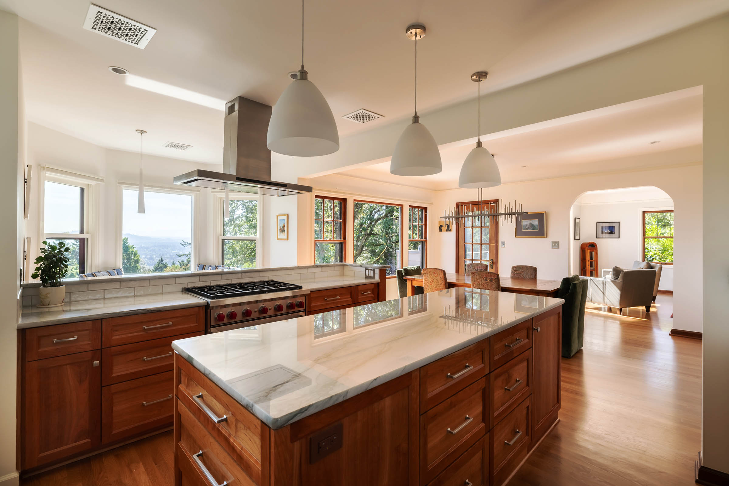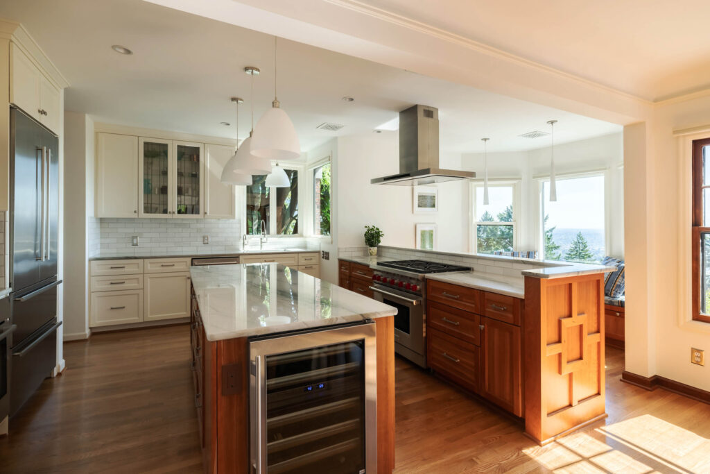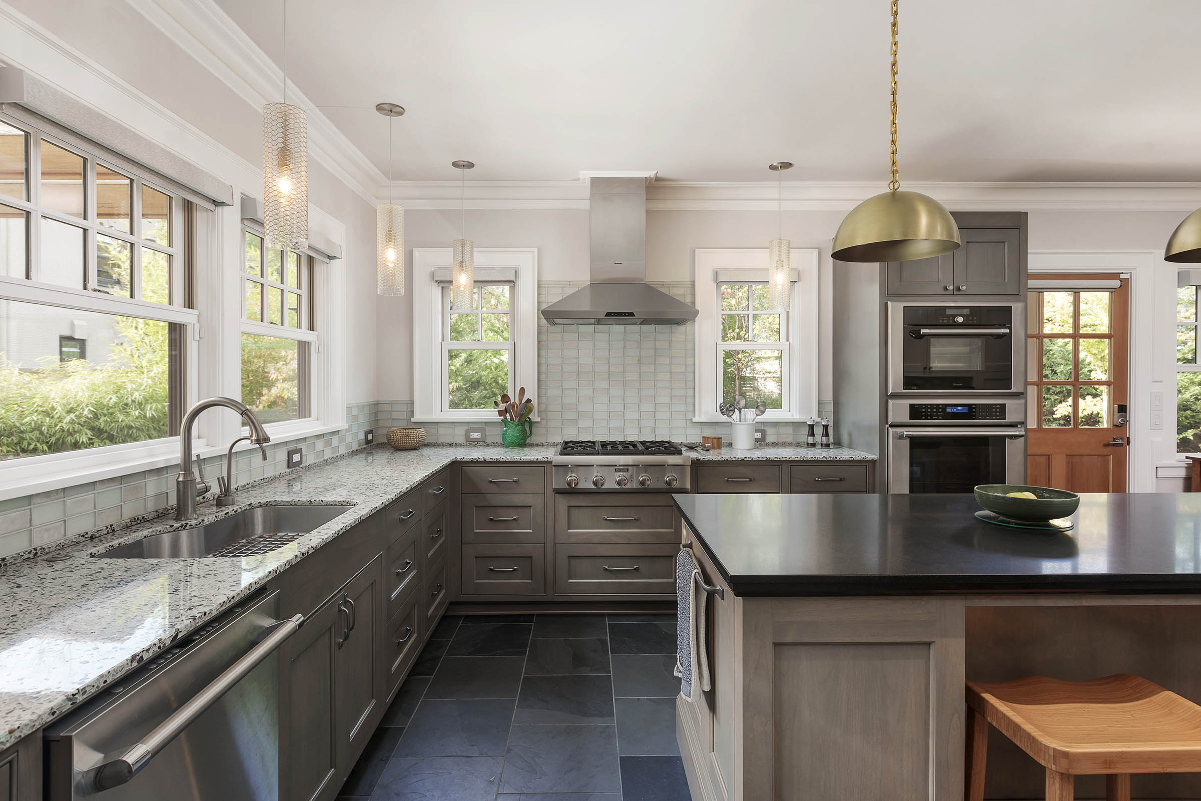 We transformed this modest 1940’s single-story home into a four-story northwest beauty. This down-to-the-studs remodel now incorporates energy-saving solutions including an advanced insulation system to improve air tightness, rain screen cladding to keep moisture out, modern insulated window casements, and shaded awnings. We leveled out the backyard by building a retaining wall, added a shed to match the exterior of the home, and built out a state-of-the-art kitchen complete with granite countertops and stainless steel appliances.