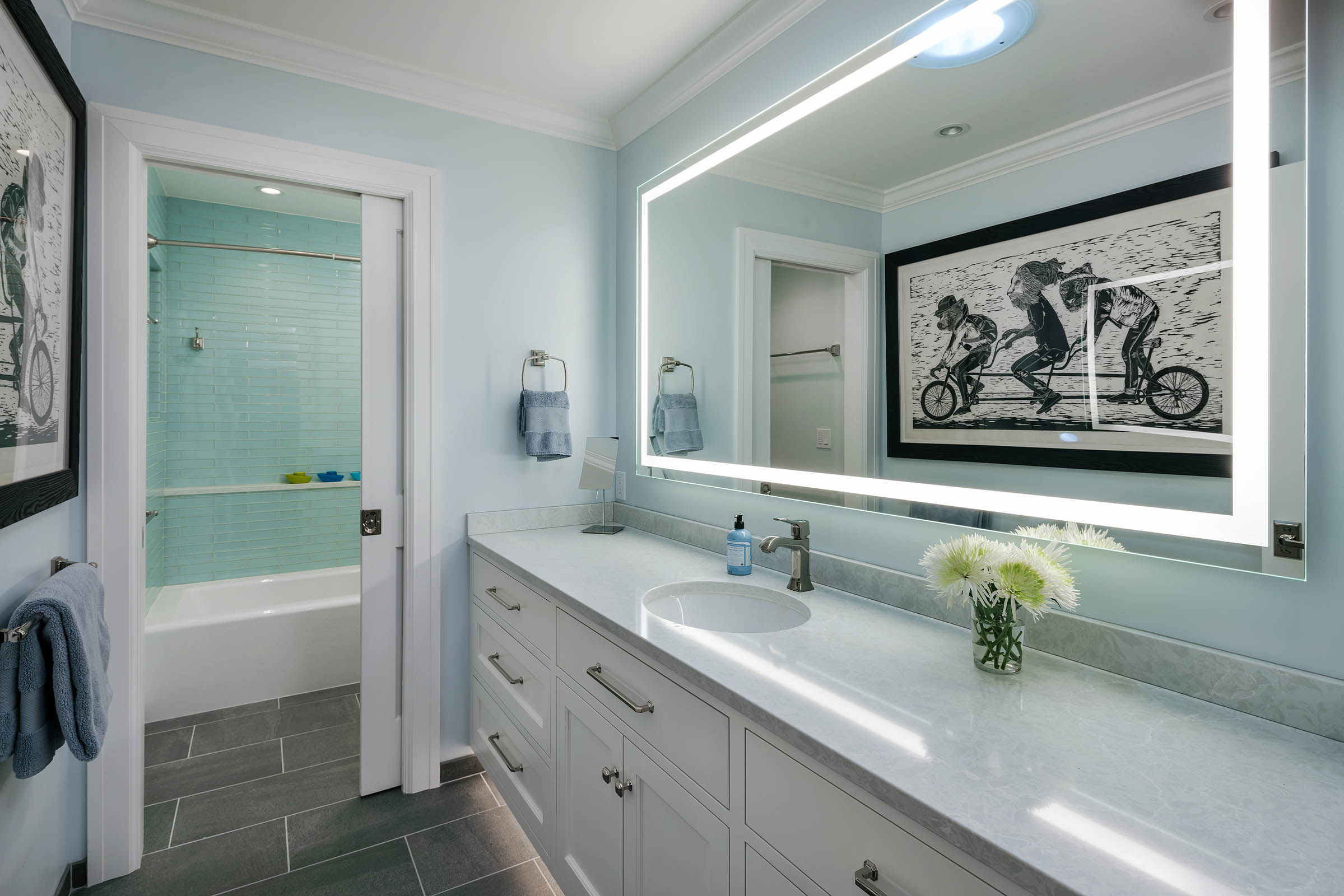 From the basement buildout to exterior landscaping, we leveled up this home with a whole property renovation. New additions included an elevator, sauna, and massage room, and on the exterior, a new ADU and garage. We converted the electric system to accommodate an earth-friendly EV car and plumbed radiant heating throughout. The sidewalks were replaced, a new irrigation system was installed, patios were added, and the front-facing entry and retaining walls were accented with custom stonework. Our team made the extra effort to attend neighborhood association meetings ensuring that all facets of the project were community supported.